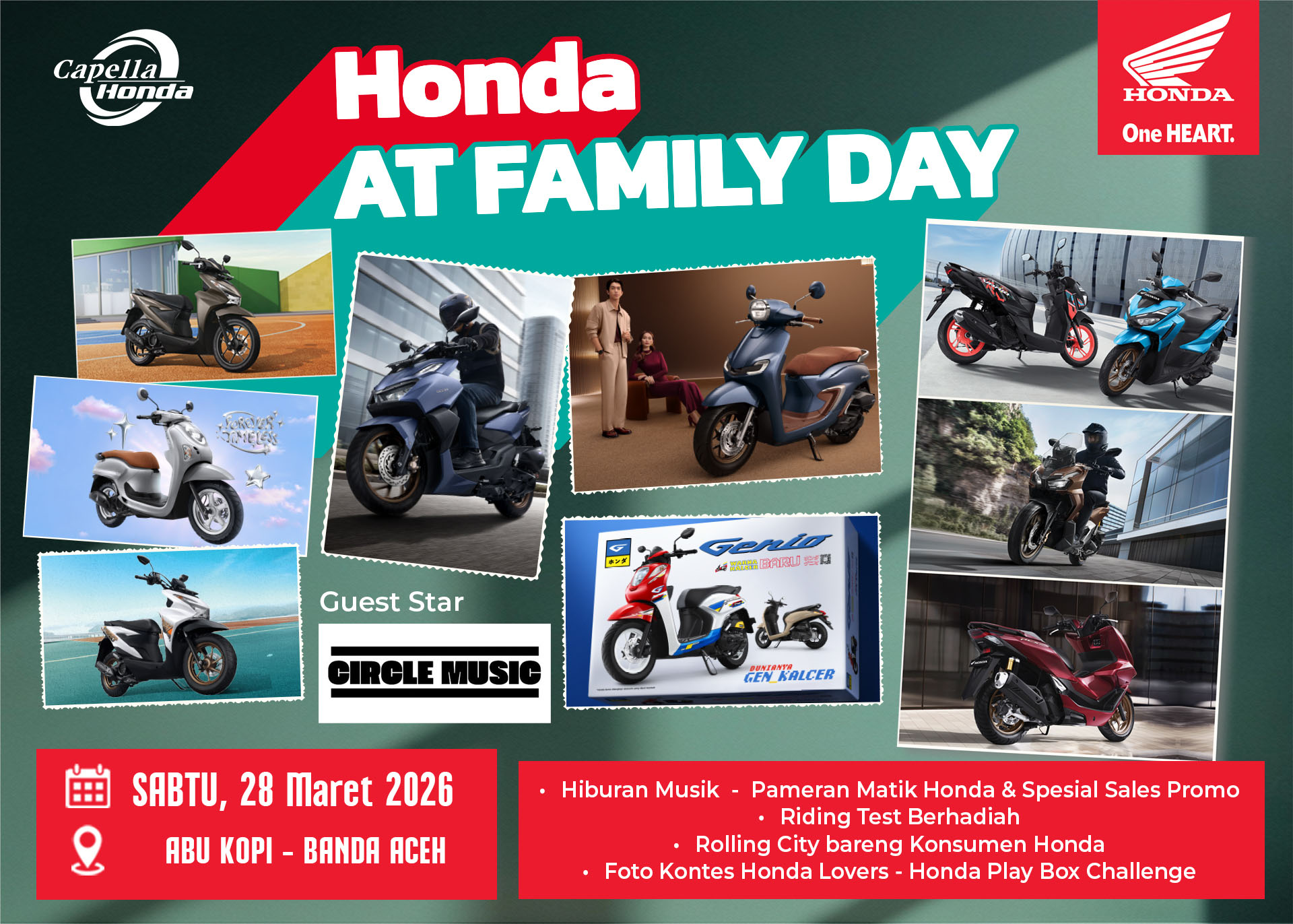 Event kali ini bakal digelar pada pada tanggal 28 Maret 2026 yang berlokasi di ABU Kopi. Jadi guys, daripada bingung mau kemana di malam minggunya, lebih baik gabung dengan mimin di event Honda AT Family Day. Mimin dapat bocoran nih bahwa panitia sudah banyak siapin hadiah buat dibagi – bagi kepada Honda Lovers yang hadir di lokasi event.